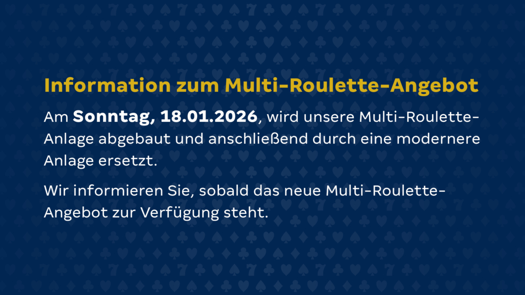 Bitte denken Sie bei Ihrem Spielbankbesuch an Ihren gültigen Personalausweis oder Reisepass!